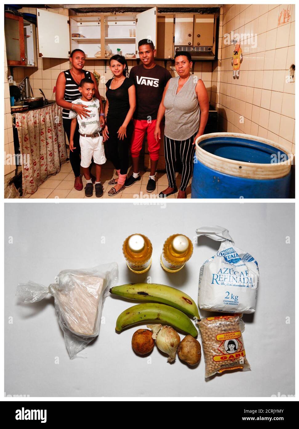 Francisca Landaeta R Poses For A Picture Next To Her Relatives L R Luisa Gomez Gabriel Castillo Kerlin Garrido And Antony Arias Top And The Food They Have At Their Home In Caracas